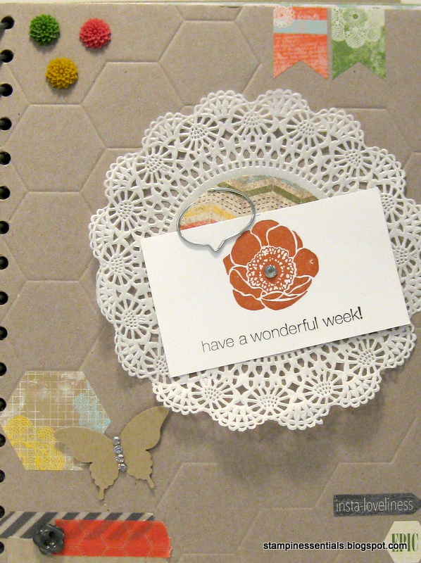 - The 'have a wonderful week!' note was tucked in one of my Stampin' Up! orders and given to me by a gal at the Home Office in Utah. It meant a lot and I love it, so it made the cover of my journal! A cute reminder to me, that it's all going to be okay and everything will work out!